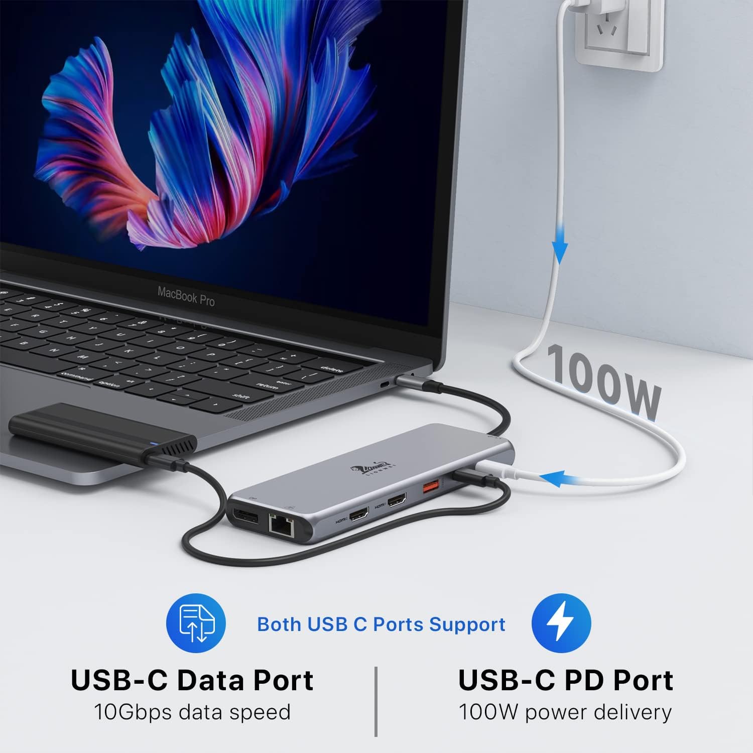 Introducing the ultimate all-in-one solution for your connectivity needs – the 13 in 1 USB C Docking Station. With dual monitor support, triple display capabilities, and a total of 8 USB C/A ports, this docking station is perfect for MacBook, Dell, HP, Lenovo, and Surface users alike.