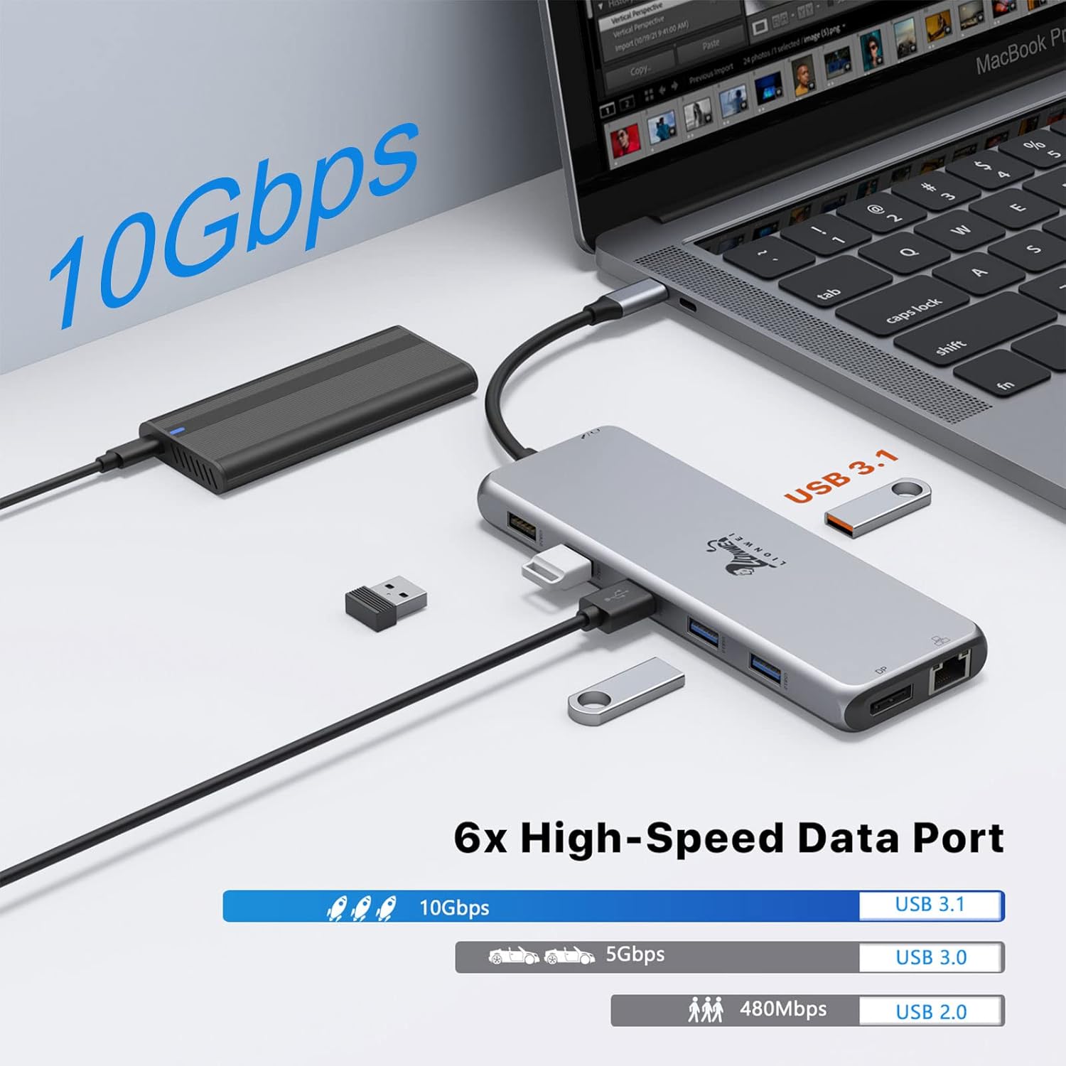 Say goodbye to tangled cords and limited ports – this docking station has everything you need in one sleek and compact device. Enjoy lightning-fast Ethernet connectivity, crystal-clear audio output, and seamless integration with your favorite devices.