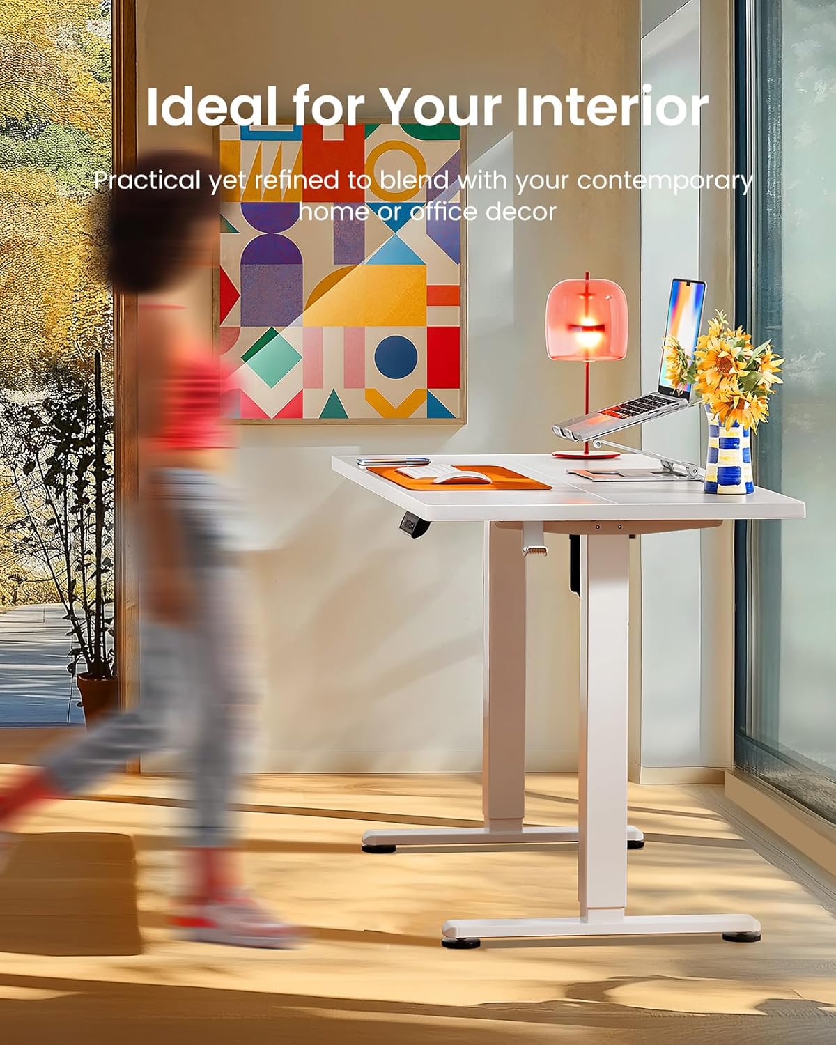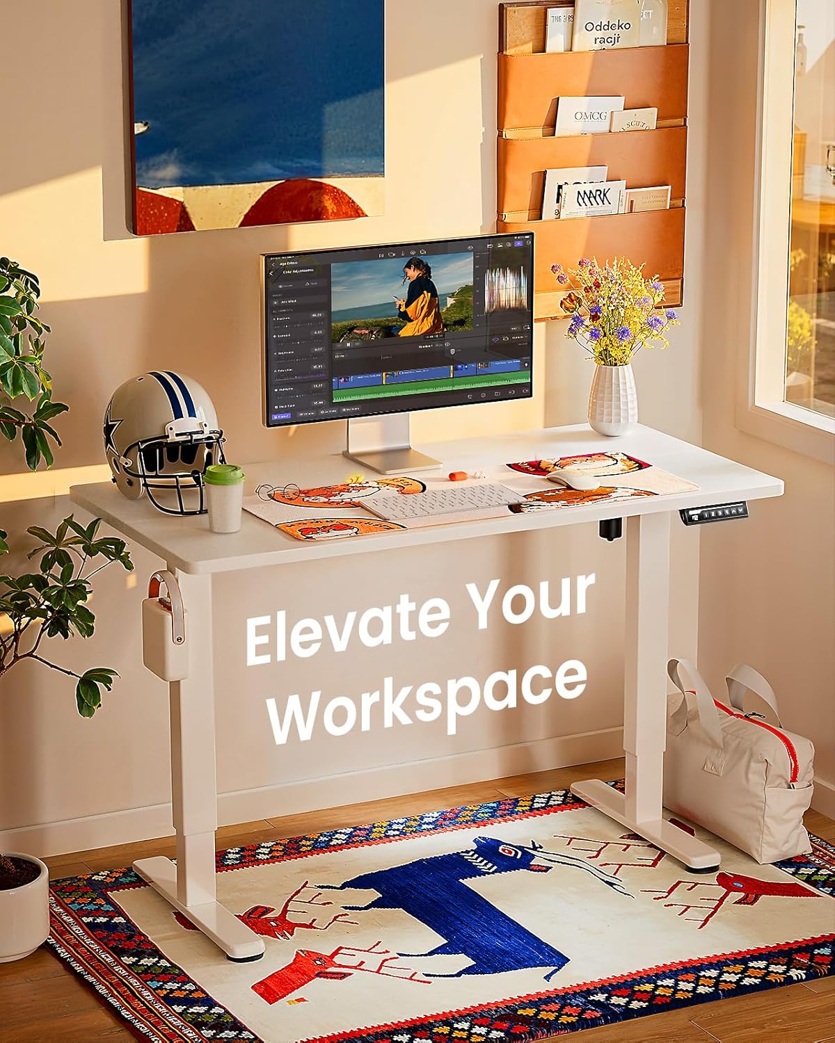 The ErGear Height Adjustable Electric Standing Desk is the perfect solution for those looking to improve their work-from-home setup or office space. This desk features a sleek and modern design with a white finish that will complement any decor.