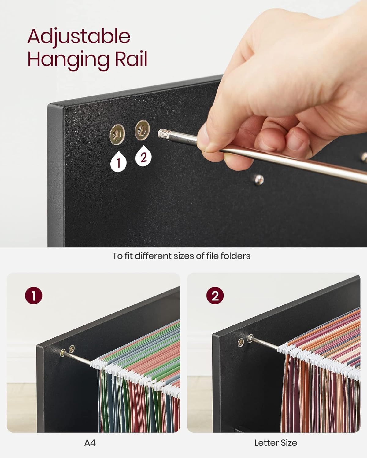 Introducing the VASAGLE 2-Drawer File Cabinet – the perfect solution for organizing your home office or workspace. This compact and versatile filing cabinet is designed to hold A4 and letter-size files, as well as hanging file folders, making it easy to keep all of your important documents in order.